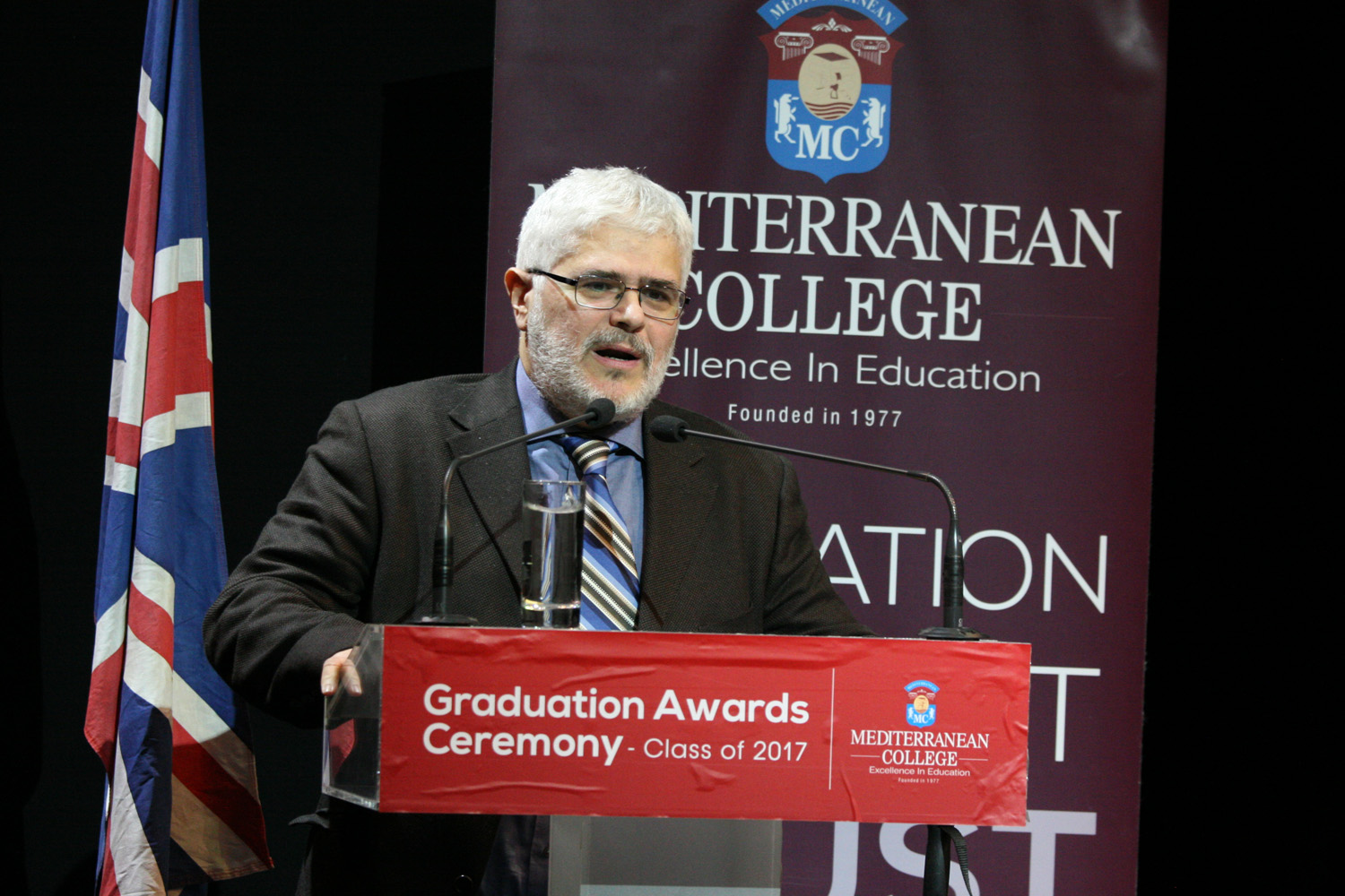 Στα 4 βασικά κριτήρια – την αξιοκρατία, την εργατικότητα, την εξωστρέφεια και την Ελληνικότητα – με τα οποία οι απόφοιτοι της τάξης του 2017 θα μπορέσουν να συγκροτήσουν και να εξασφαλίσουν την επαγγελματική τους καταξίωση, αναφέρθηκε – μεταξύ άλλων – στον χαιρετισμό του, ο Ιδρυτής του Mediterranean College Καθηγητής – Συγγραφέας, κ. Σοφοκλής Ξυνής.