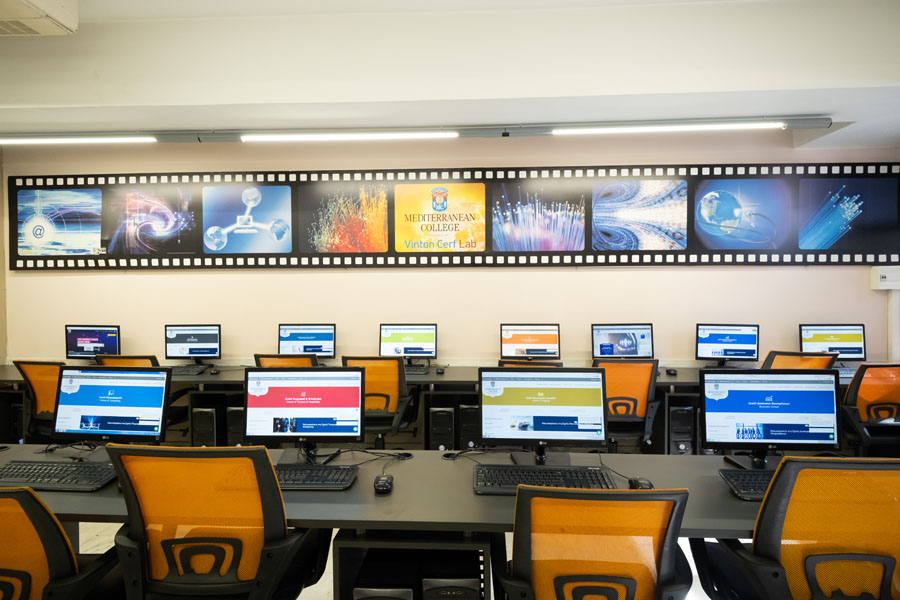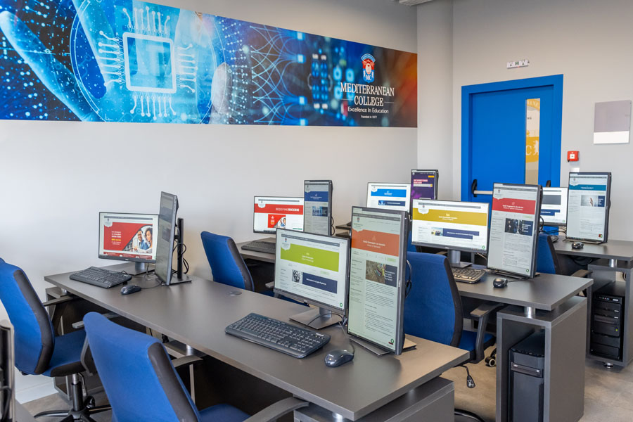 Το Mediterranean College διαθέτει 9 Εργαστήρια Πληροφορικής με περισσότερους από 160 σταθμούς εργασίας, εξοπλισμένα με σύγχρονα συστήματα και δίκτυα και υψηλές ταχύτητες σύνδεσης στο internet. Οι εργαστηριακοί χώροι χρησιμοποιούνται για προγραμματισμένα μαθήματα αλλά και για ελεύθερη χρήση των φοιτητών, διεξαγωγή σεμιναρίων, κ.α. Στα εργαστήρια είναι εγκατεστημένες τελευταίες εκδόσεις σε υλικό, λειτουργικά συστήματα και εφαρμογές λογισμικού, ενώ υπάρχει συστηματική αναβάθμισή τους για την κάλυψη των συνεχώς μεταβαλλόμενων εκπαιδευτικών αναγκών.