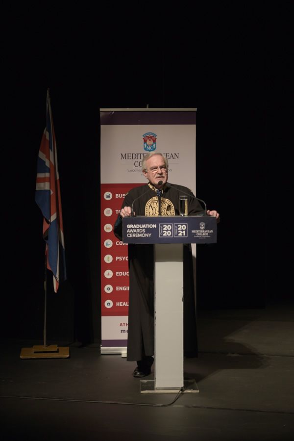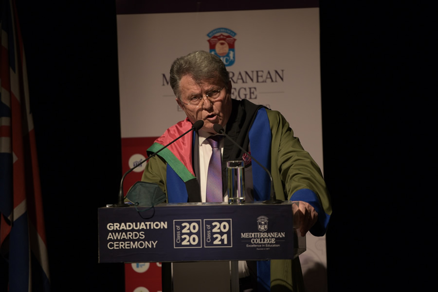 «Η ακαδημαϊκή βαρύτητα, η παγκόσμια περιωπή, αλλά και το διεθνές κύρος των πτυχίων και των διπλωμάτων που σε λίγο θα παραλάβετε σε συνδυασμό με τη βιωματική σπουδαστική σας εμπειρία στο Mediterranean College, θα πρέπει να αποτελέσουν, έναυσμα για προβληματισμό, όσον αφορά στο αξιακό σύστημα, με το οποίο έχετε ήδη θωρακισθεί, ώστε στη σταδιοδρομία σας, να αντιμετωπίζετε αποτελεσματικά τις αναπόφευκτες δυσκολίες, εμπόδια ή τυχόν αποτυχίες, αλλά και να διαχειρίζεσθε με σύνεση τις επιτυχίες και με ακόμη μεγαλύτερη σωφροσύνη και ταπεινότητα τις πολύ μεγάλες επιτυχίες σας…». Με αυτή τη χαρακτηριστική δήλωση καλωσόρισε του απόφοιτους της Τάξης του 2020 & 2021, ο Ιδρυτής & Επίτιμος Πρόεδρος του Mediterranean College, Καθηγητής & Συγγραφέας, κ. Σοφοκλής Ξυνής.