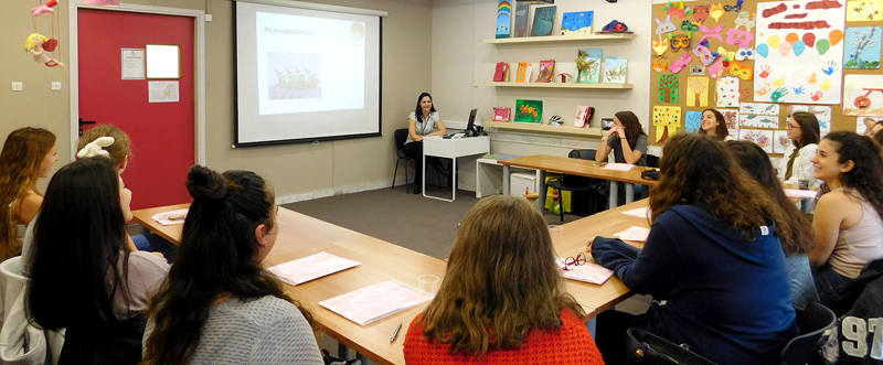 Την ίδια ημέρα, η Σχολή Επιστημών της Αγωγής καλωσόρισε την κ. Ζωή Μπράτσου, η οποία μοιράστηκε με τους φοιτητές της Σχολής τις εμπειρίες της από την 18ετή επαγγελματική εμπειρία της ως νηπιαγωγός και ως προϊσταμένη νηπιαγωγείου. Η κα. Μπράτσου έκανε ιδιαίτερη αναφορά στο σύνθετο ρόλο του/της εκπαιδευτικού προσχολικής αγωγής, ως πάροχος τόσο αγωγής όσο και φροντίδας των παιδιών.