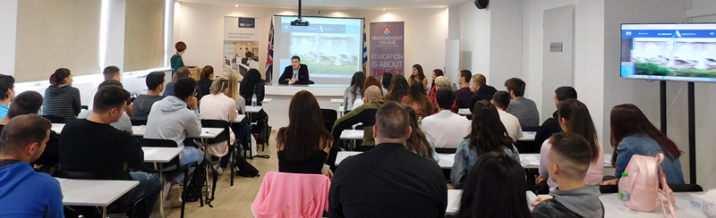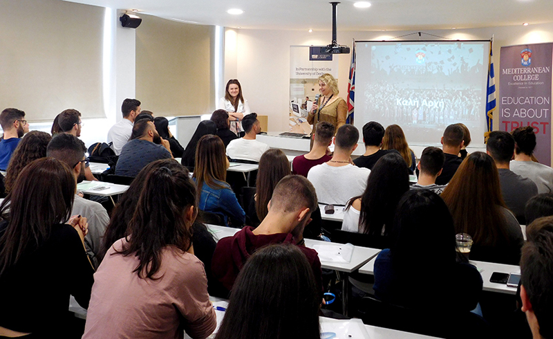 Οι Ακαδημαϊκοί υπεύθυνοι του Mediterranean College μίλησαν στους φοιτητές για τα προνόμια φοίτησης και το σύστημα υποστήριξης φοιτητών, όπως το Κέντρο Ακαδημαϊκών Δεξιοτήτων, το Τμήμα Αγγλικής Γλώσσας, Tο θεσμό του προσωπικού συμβούλου-καθηγητή, το Συμβουλευτικό Κέντρο και τον τακτικό έλεγχο ακαδημαϊκής προόδου & feedback, από τους καθηγητές του Mediterranean College.